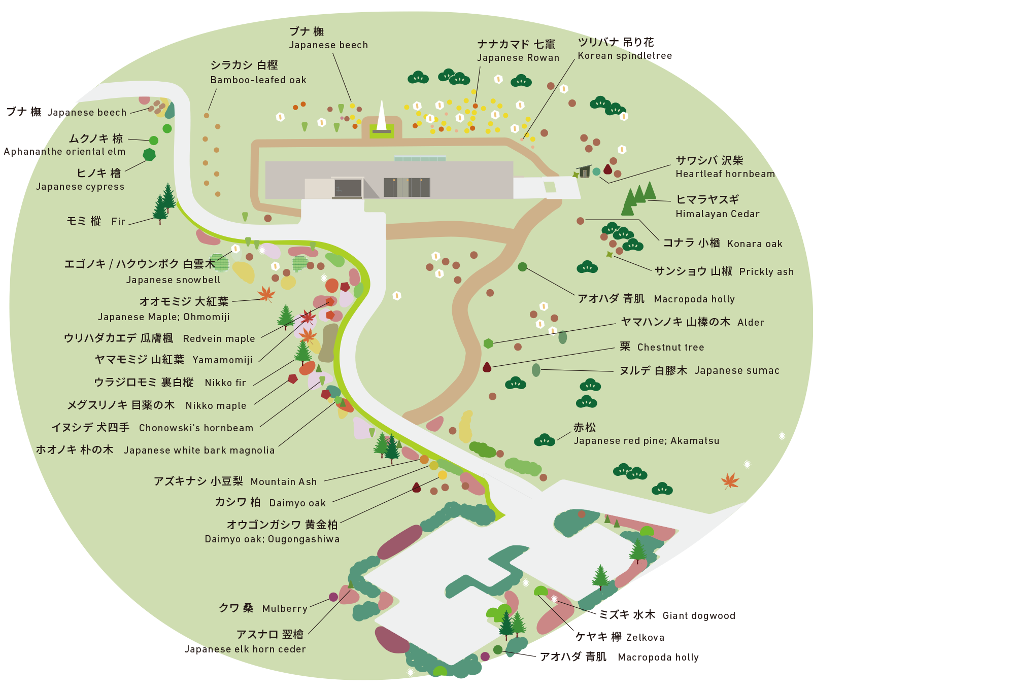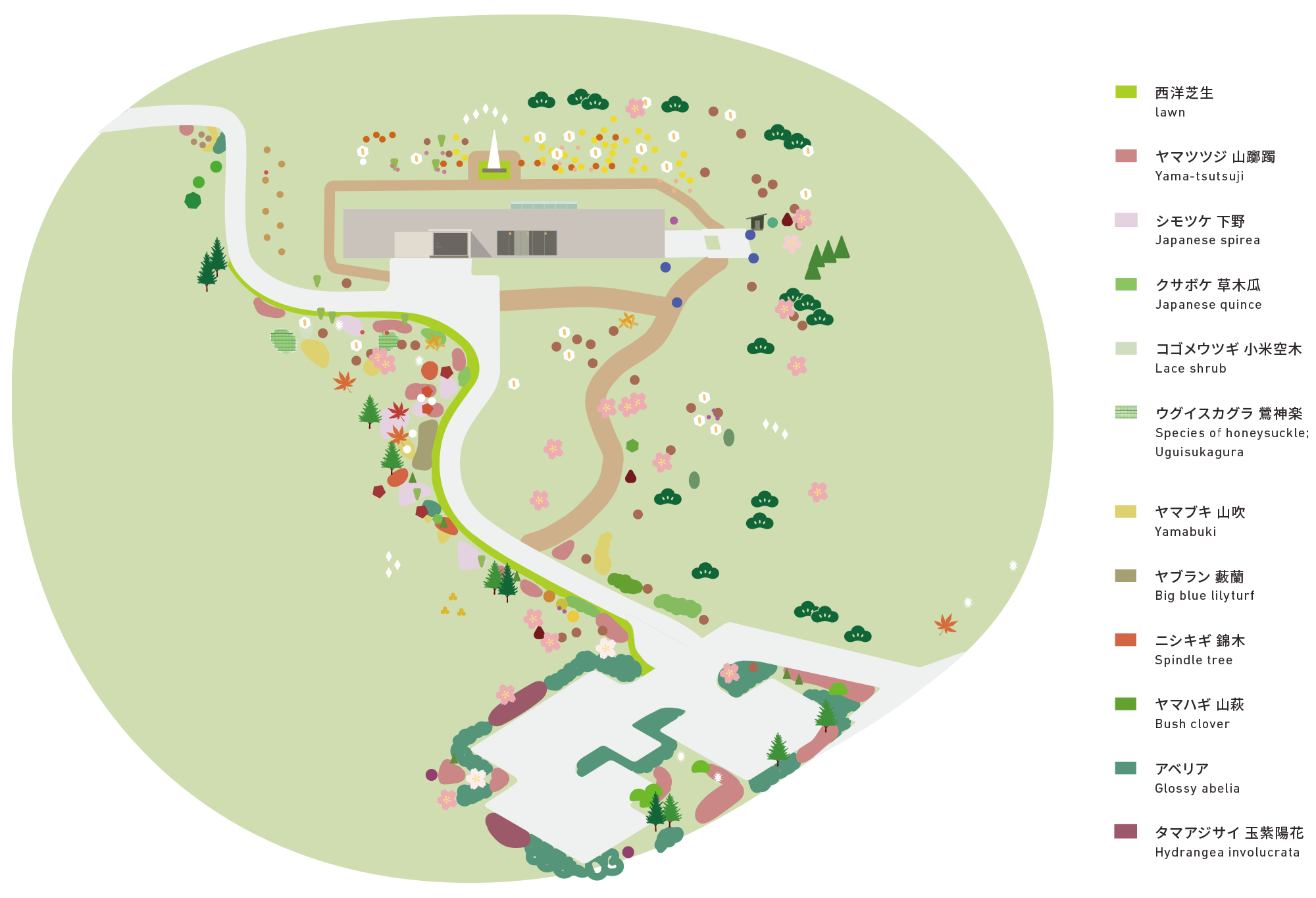自生している樹木を残しながら、季節の植物が植栽されています。