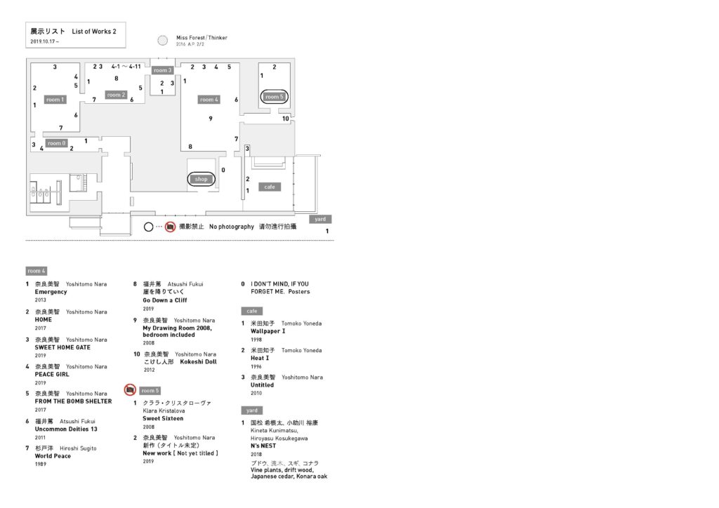 Exhibition 2019.08 2019.08.31 Below is the state of the N’s YARD Exhibition rooms of August 2019. front room room 1 room 2 outdoor sculpture / room 3 room 4 hallway / room 5 outdoor artwork photo: Mie Morimoto
