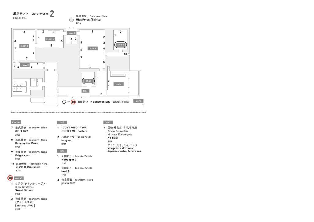 Exhibition 2020.03 2020.03.31 Below is the state of the N’s YARD Exhibition rooms of March 2020. room 1 room 1 / room 2 room 2 room 3 room 4 room 5 / hallway hallway photo: Mie Morimoto