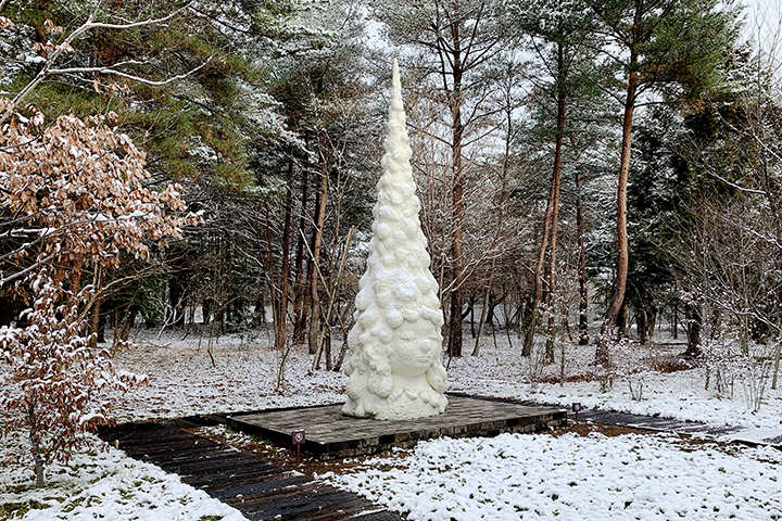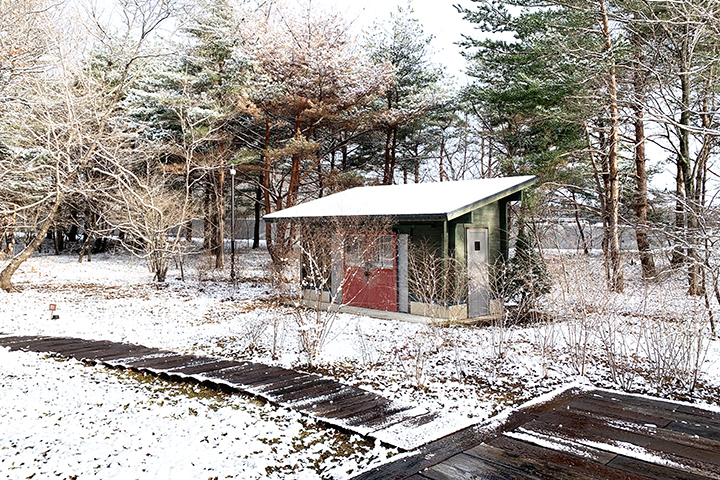 It snowed in the afternoon at N’s YARD on December 17th, and today, December 18th, a blanket of snow remains on the lawn outside.