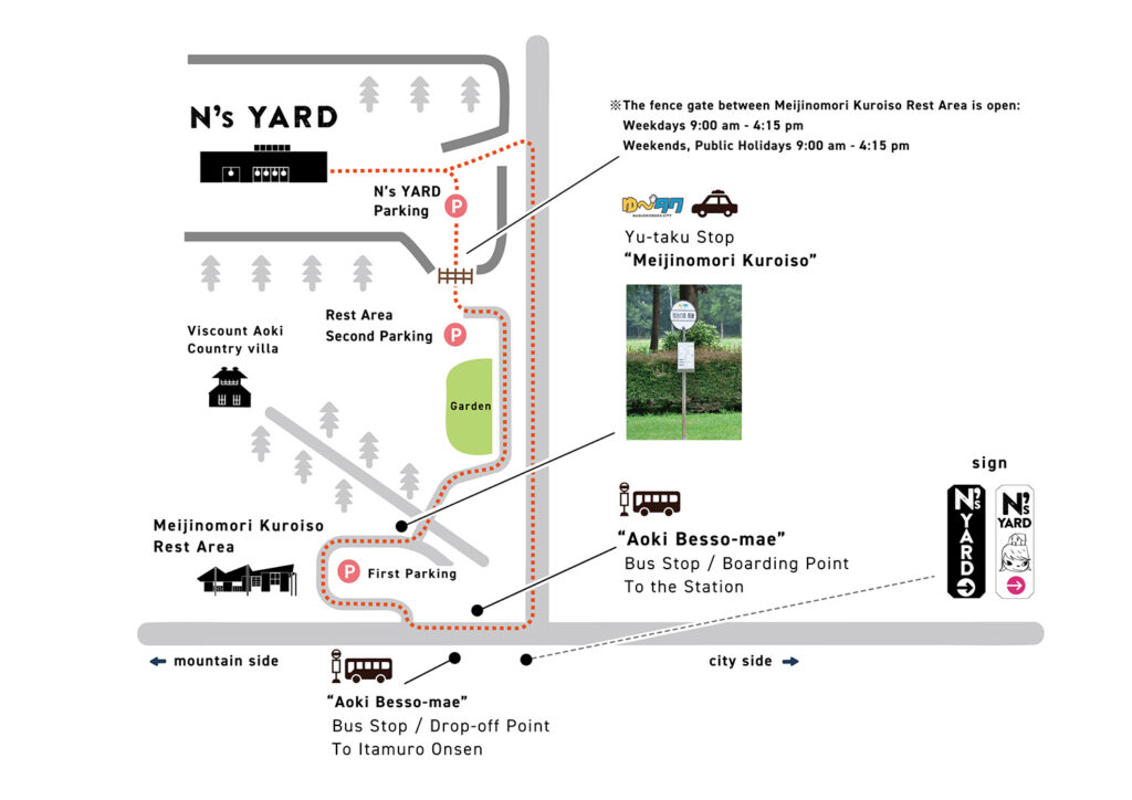 - • The nearest stop to N’s YARD is Aoki Bessou-mae.