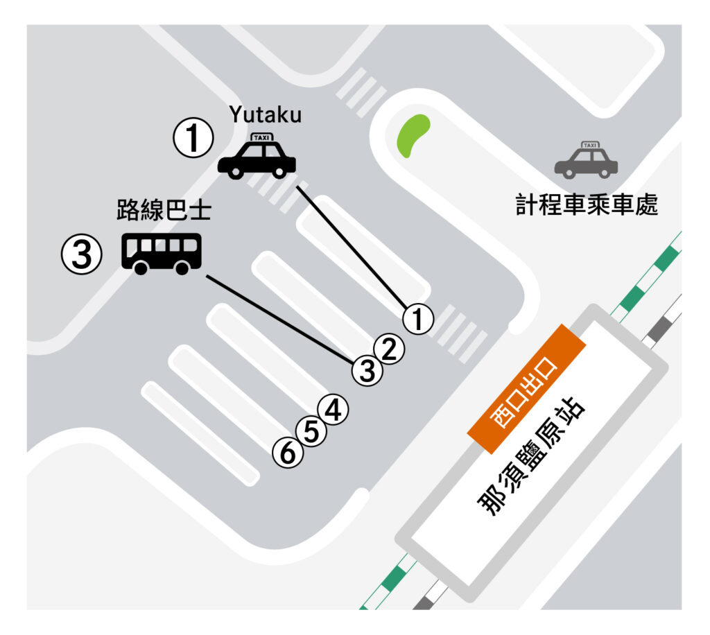 • 請在那須鹽原站或黑磯站西口的Yutaku乘車處等候。