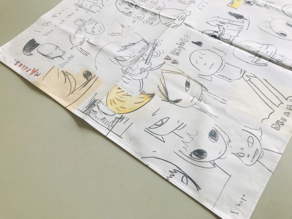 Based on white cotton cloth printed patterns of Nara’s drawing painted in original colors.