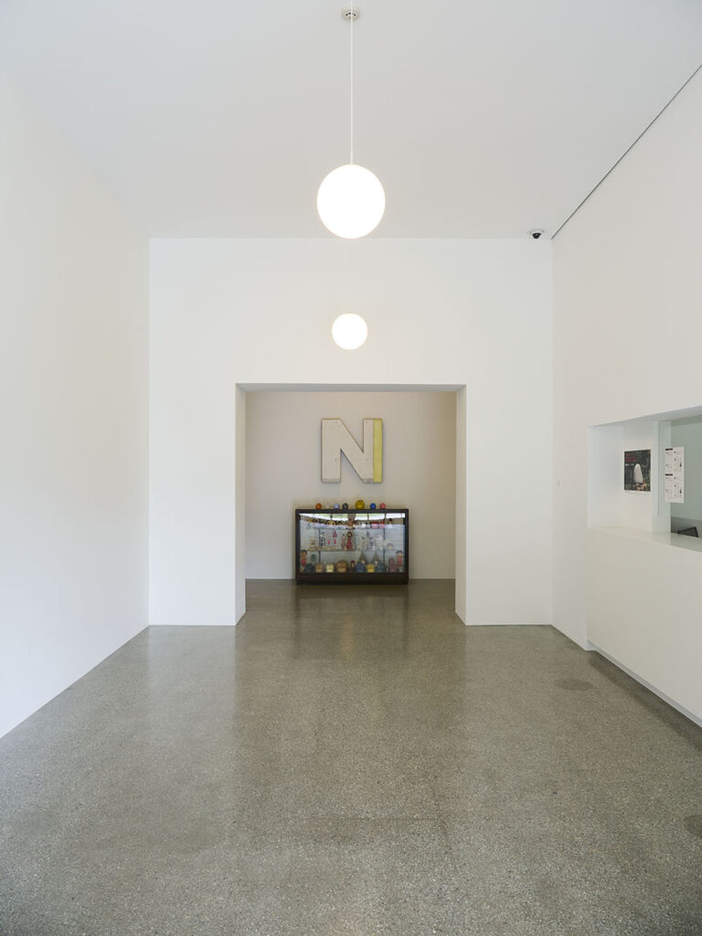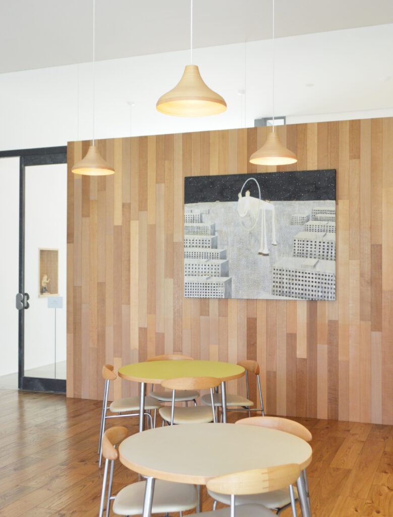 9/6(土)にカフェに展示されていた作品、奈良美智《花頭花瓶(初代)》2007年の展示が終了しました。