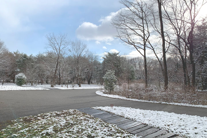 12/18には芝の上などにうっすら雪が積もった雪景色となりました。