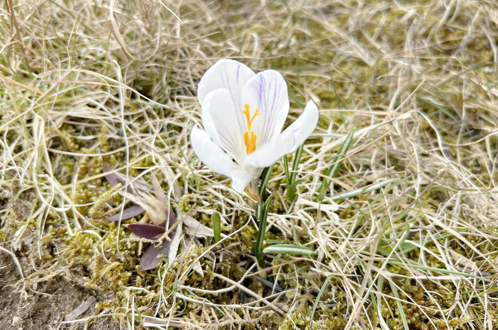 N’s YARDが位置するエリアでは、まだまだ朝晩冷え込む日が続いていますが、お庭に奈良さんが植えたクロッカスの花が数輪咲きました。