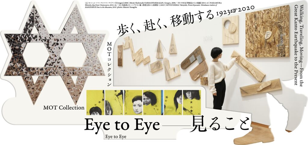 1 階では、「歩く、赴く、移動する 1923→2020」と題し、1923 年の関東大震災直後に上京した鹿子木孟郎が被災地を歩き描いたスケッチから、移動の自由が制限されたコロナ禍における2020 年の当館での個展に際して制作されたオラファー・エリアソン作品まで、「歩く/赴く/移動する」をキーワードに多彩な作品で構成します。藤牧義夫の傑作《隅田川両岸画巻》(1934)を展示するほか、「MOT サテライト」を機に制作されたクサナギシンペイ、光島貴之、ワタリドリ計画(麻生知子、武内明子)の新収蔵作品なども併せてご紹介します。さまざまな時代や国に跨る作家たちに歩みを重ねることで、私たちが生きる世界や社会への視座を高める機会となれば幸いです。